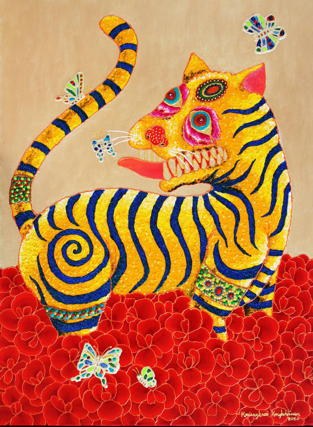80 x 60 cm, 2020The Secret Guardian, Chapter 3 : The Playful Tiger.The Secret Guardian, Chapter 2 : Tiger and The Red Flowers.