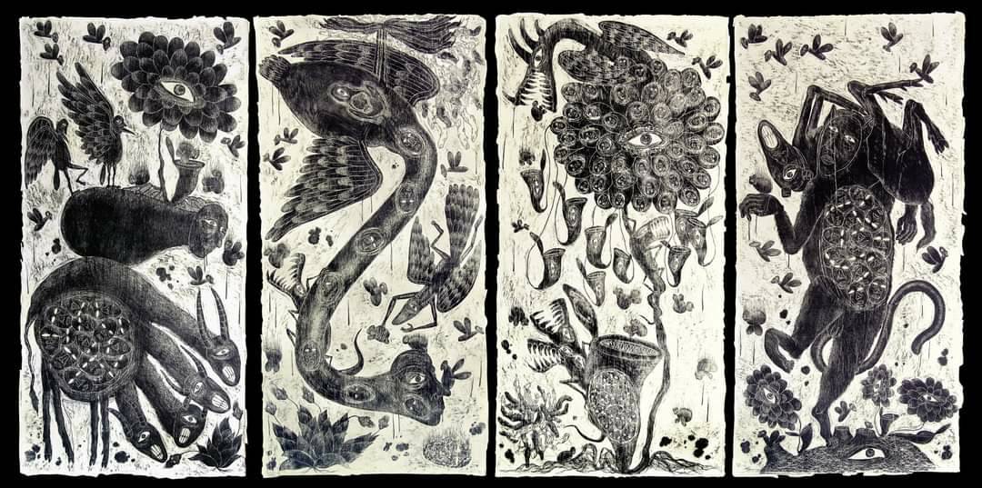Spiritual Disease 1-4, woodcut. 2009,200 x 400 cm