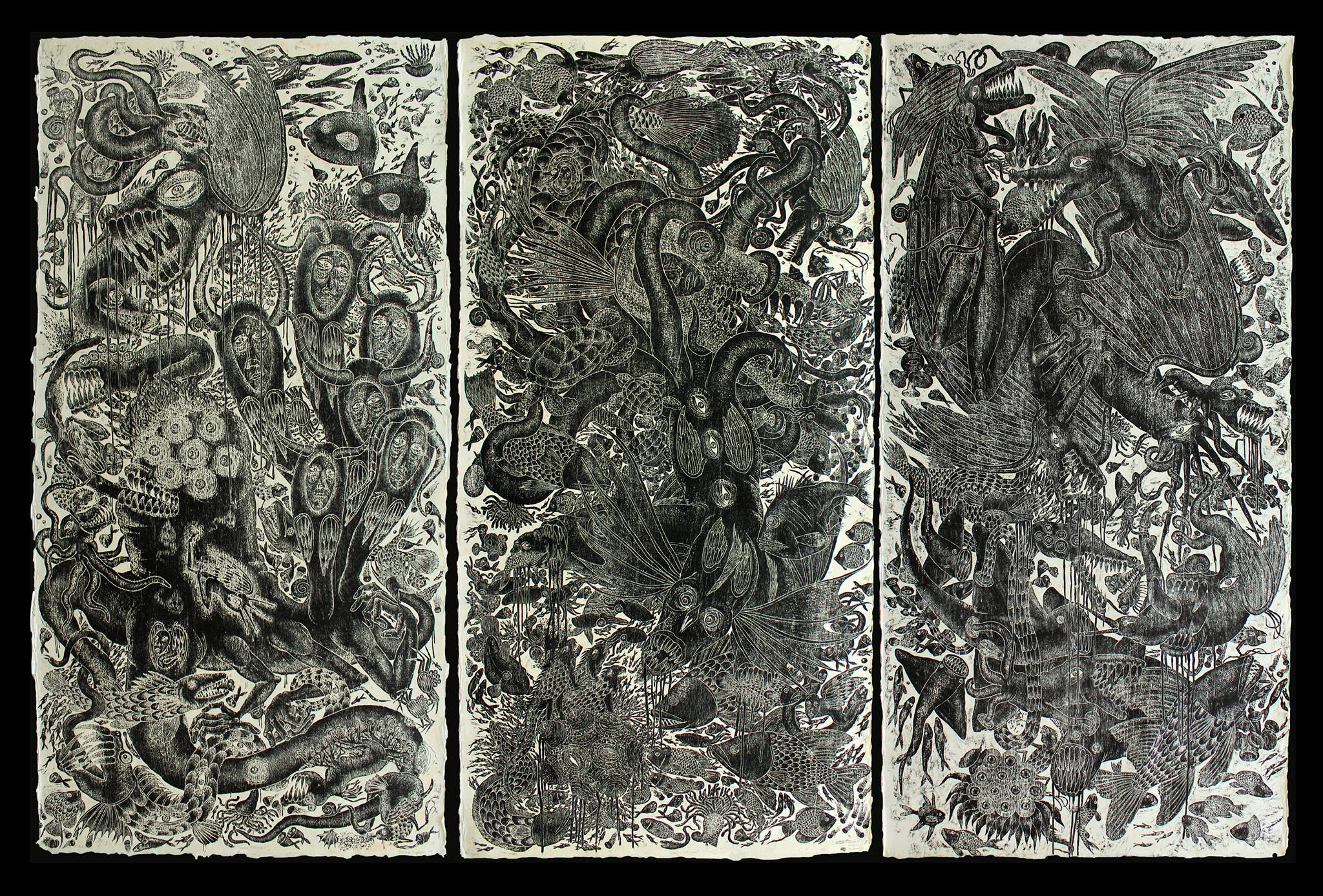 Oceanic Wilderness 1-3.Woodcut.200x100 cm.2011-2012