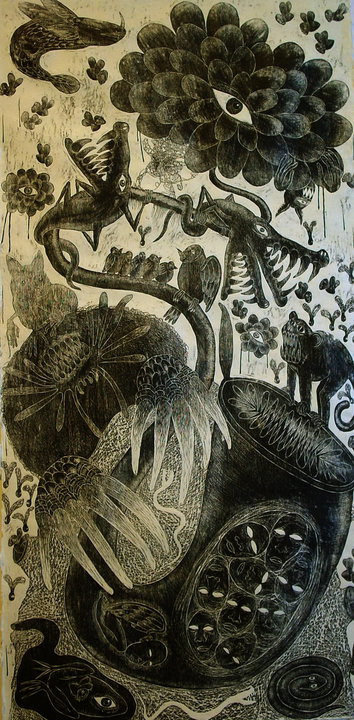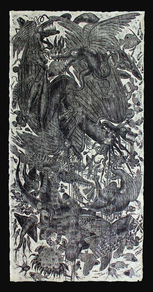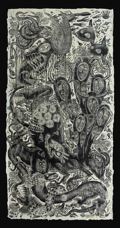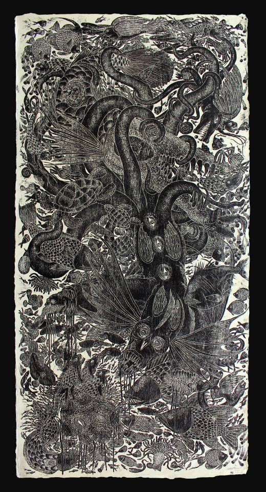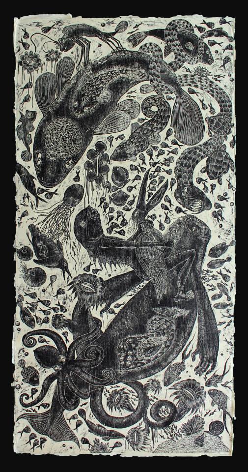 Oceanic Wilderness 1.Woodcut.200x100 cm.2011