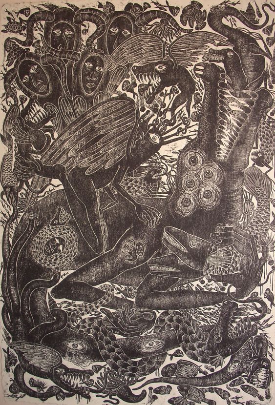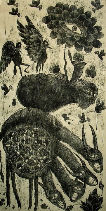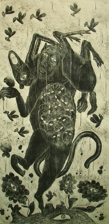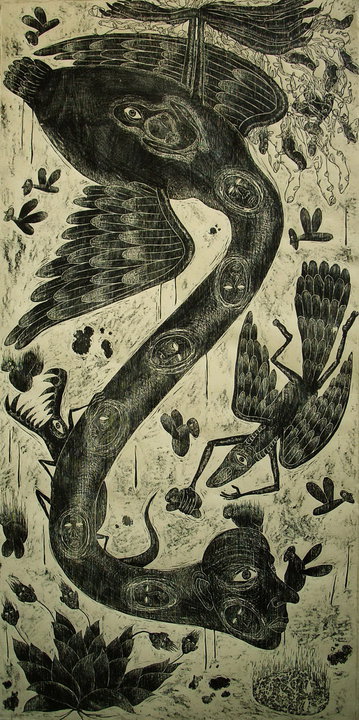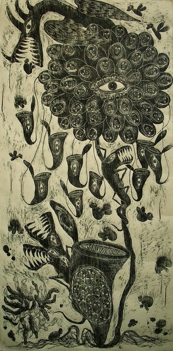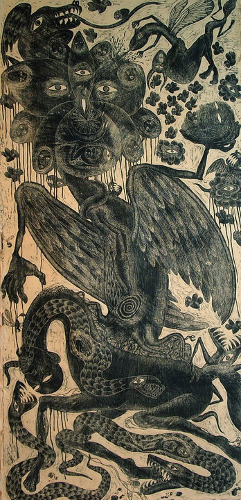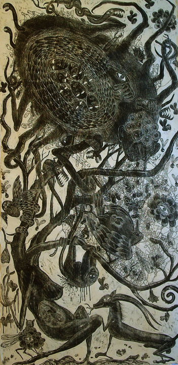 Spiritual Disease 2, woodcut. 2009,200 x 100 cm